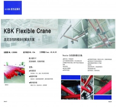 KBK柔性起重機(jī)系統(tǒng)應(yīng)用模塊化設(shè)計代替?zhèn)鹘y(tǒng)的整機(jī)設(shè)計概念,將起重機(jī)功能上基本相同的部件制成具有多種用途,有相同聯(lián)接要素和可互換的標(biāo)準(zhǔn)模塊。根據(jù)需要可組成單梁懸掛起重機(jī)、雙梁懸掛起重機(jī)、懸臂起重機(jī)、輕型門式起重機(jī)及堆垛起重機(jī),還能組成大型自動化物料搬運系統(tǒng),安全起重范圍覆蓋125kg-2000kg。
